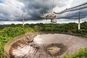 شکل۱۰- یکی از کارهای علمیای که تلسکوپ آرسیبو قبل از سقوط در آن برتری داشت، اندازهگیری ایزوتوپهای عنصری با بارهای هستهای یکسان اما جرمهای هستهای متفاوت در کیهان بود. محققان آرسیبو با اندازهگیری ویژگیهای طیفی یون هیدروکسیل موجود در فضا، نشان دادند ثابت ساختار ریز α و همچنین نسبت جرم پروتون به الکترون، در طول سهمیلیارد سال گذشته مطلقا تغییر نکرده است.