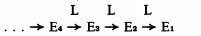 آنها را میتوان به صورت یک سری E۱ ، E۲، E۳، . . . نشان داد که در زمان به عقب میروند. بنابراین E۱ را E۲ پدید آورده است که به نوبه خود E۳ آنرا به وجود آورده است و به همین ترتیب. این زنجیرهی علّی را میتوان به صورت زیر نمایش داد: